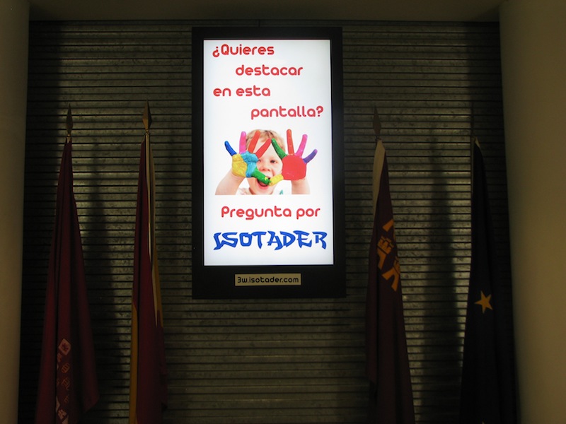 Fruto de la colaboración entre la Federación de Empresarios de la Región de Murcia (FREMM) e ISOTADER se ha puesto en marcha un servicio exclusivo e innovador de carteleria digital. Desde setiembre de este año se pone a disposición de la empresas un nuevo servicio de emisión de publicidad digital en la pantalla instalada en una ubicación prioritaria, la entrada principal junto a la cafeteria y el salón de actos. Mediante una sencilla contratación se podrá optar a emitir un anuncio o spot de 20 segundos que será emitido de forma ininterrumpida durante todo el período de apertura de las instalaciones de lunes a sábado. El servicio ofertado es integral e incluye el diseño del anuncio en caso de que el contratante así lo desee. Para mayor información contacte con Isotader en los teléfonos o mail de referencia.